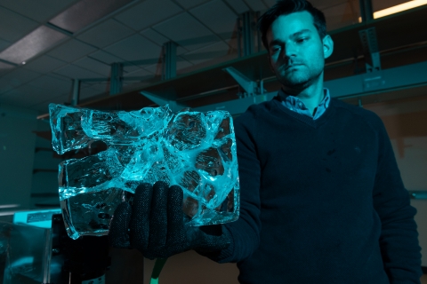 “The water pressure concentrates down to a point called a crack tip. It tries to push the crack apart and make it deeper, and the ice pushes back. When the water gets deep enough, it can win out and propagate the crack to the bottom of the ice shelf,” Robel said.
