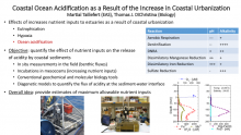 The urbanization of the coast is generating significant environmental issues, including increasing nutrient runoff that promotes eutrophication and hypoxic conditions in estuaries. At the same time, the excessive input of nutrients is also responsible for an increase acidification of coastal waters, as denitrification in sediments typically generates acidity.